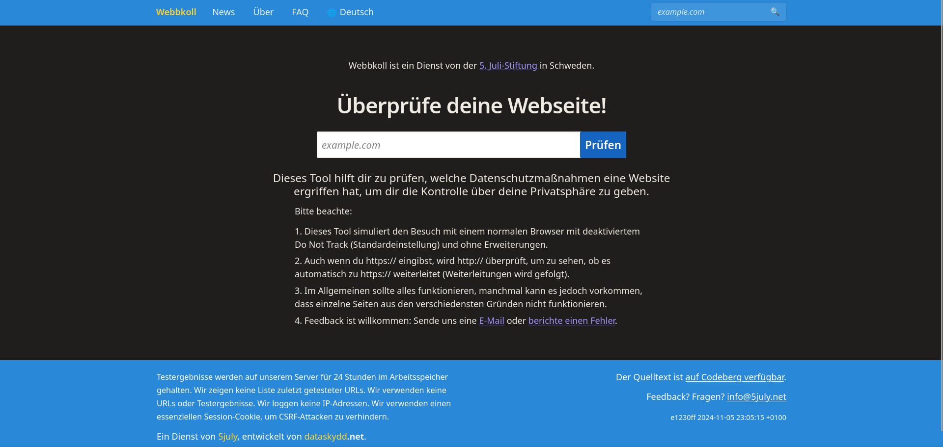 Dieses Tool hilft dir zu prüfen, welche Datenschutzmaßnahmen eine Website ergriffen hat, um dir die Kontrolle über deine Privatsphäre zu geben.